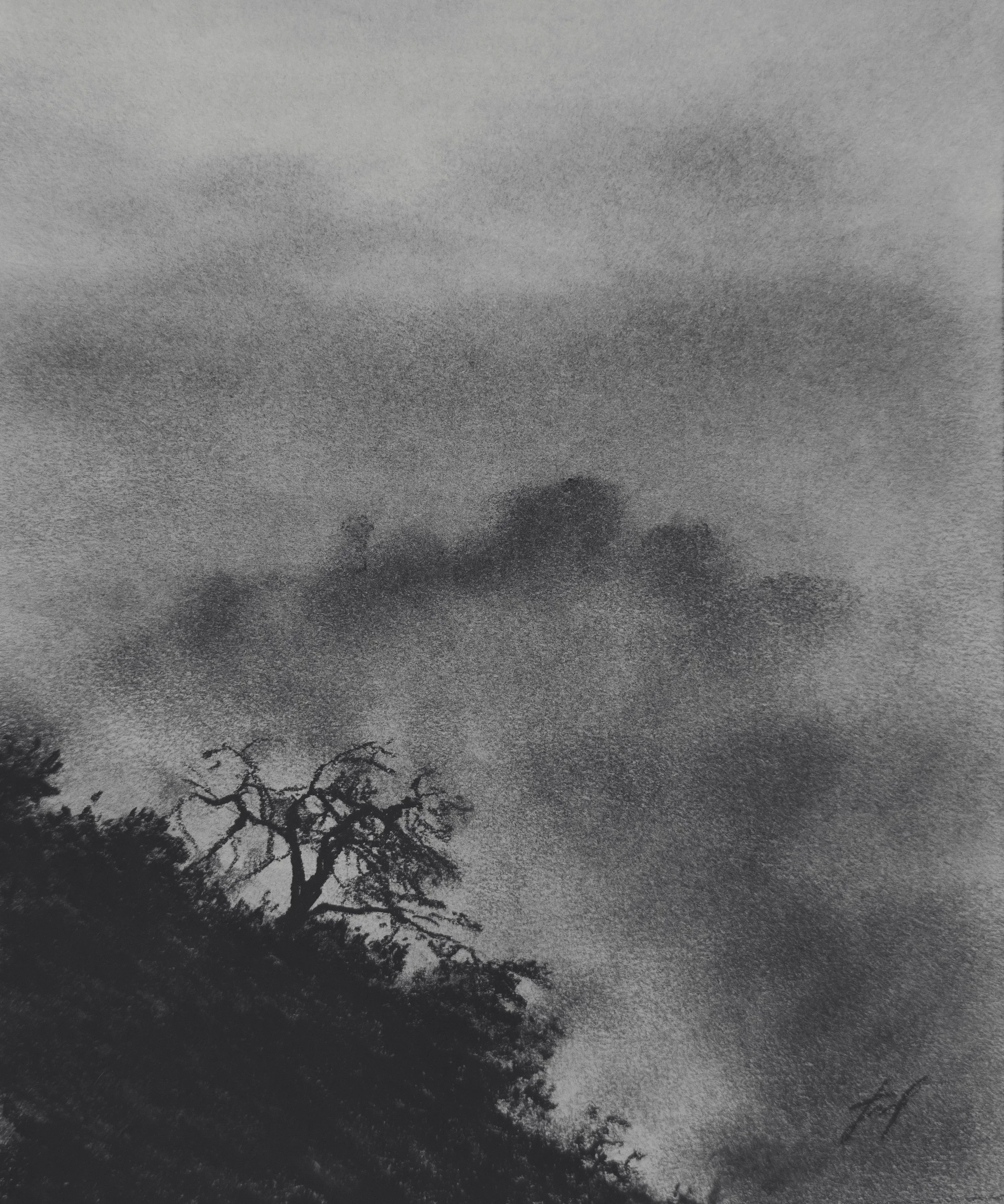 Ash within ash. A signature born of the same material as the drawing itself.